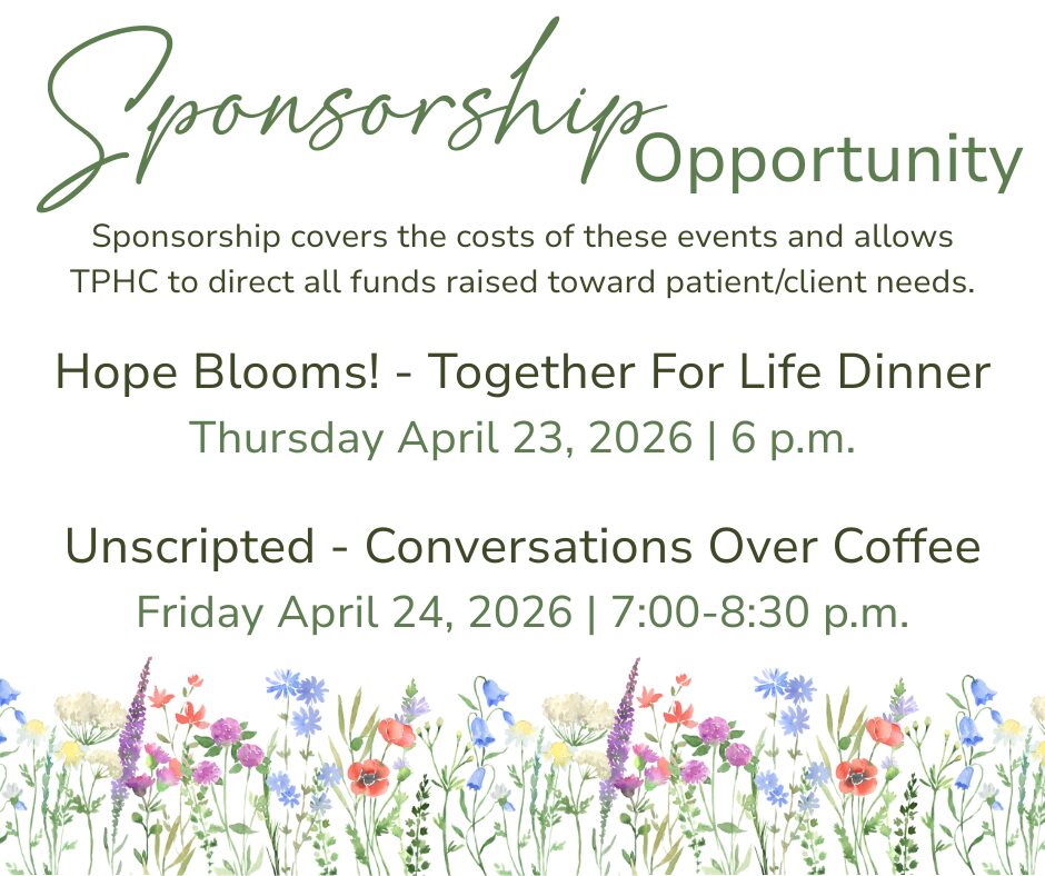- Bronze ($250) – Sponsors are recognized in our newsletter, featured in the printed event program, and listed on our website (www.tphctogether.org) and social media accounts.
